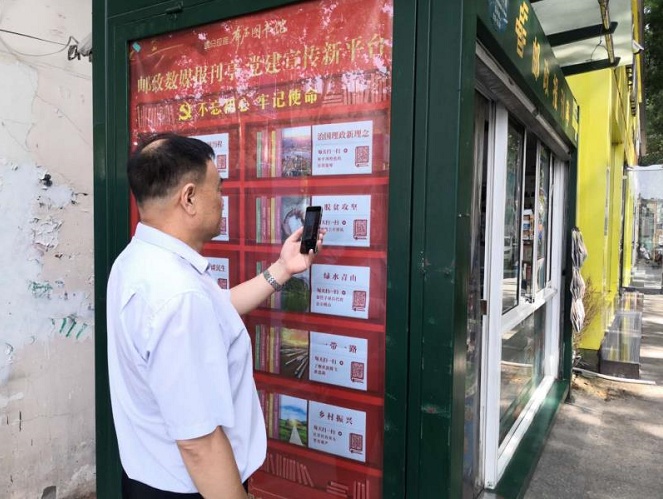 用手機(jī)掃描郵政報(bào)刊亭上二維碼,聆聽黨的聲音。南陽市七一路與梅溪路交叉口的“郵政數(shù)媒報(bào)刊亭”升級(jí)正式完成,為我市搭建了新的黨建知識(shí)學(xué)習(xí)平臺(tái)。