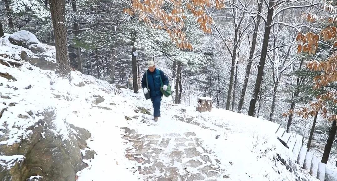 冬天,山上的氣溫通常達到零下十幾攝氏度,甚至零下二十幾攝氏度。凜冽的寒風吹在臉上像刀割一樣疼,即使在這種冰天雪地的天氣里,徒步上山,汗水也會濕透全身的衣服、頭發,風一吹就會成為冰溜。在剛下完大雪的一天,行至玉皇頂時,突然刮起了旋風,他只好一手緊緊抱住身邊的一塊大石頭,一手死死地護著郵件。旋風離去,陣陣寒風依然不斷,由于保持抱石頭的姿勢太久,宋憲臣整個人幾乎被凍在了石頭旁。