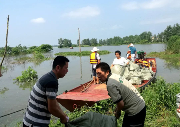 9:00,到達轉移安置點,都昌縣分公司幫扶人員早早就在那等候。安頓好受災群眾后,我們又一起將周邊幾個圩堤防汛指揮部和受災鄉鎮人員所需的方便面、礦泉水、衣物等必需品和進口郵件一袋袋搬運上船,打包出發。