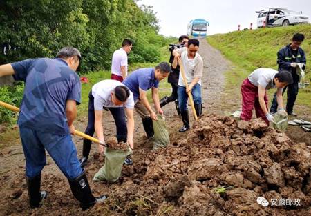 安徽各地郵政企業(yè)服從地方政府調(diào)度,發(fā)動黨員員工組建了10多支、100多人的黨員先鋒隊、青年突擊隊,奔赴抗洪搶險一線,參與駐點值班、巡堤和沿河巡檢等工作,及時通報水情和汛情。