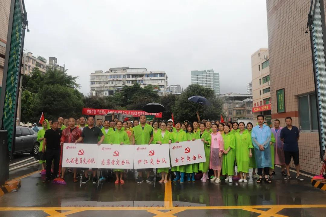 7月18日洪水消退之后,根據災后自救恢復工作安排,恩施州分公司、恩施市分公司機關干部員工150余人主動放棄周末休息,成立黨員突擊隊、志愿者突擊隊、女子突擊隊、新員工突擊隊、尹江突擊隊等5個突擊隊,針對機關大院、生產場地等洪水淹沒區域分區域開展清淤清掃工作。在清掃同時,組織信息技術和后勤部門對機關大樓、恩施市分公司攬投站、施州大道支局線路和各項設備進行檢修。