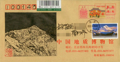 燧石俗稱“火石”,是一種含硅、質(zhì)密堅硬的巖石,破碎后形成鋒利的斷口,對敲產(chǎn)生火星,能夠引燃干草木。相傳,燧石取火法是燧人氏發(fā)明的,這種更簡易的取火方式讓人類得以真正控制火種、掙脫黑暗的束縛。在這枚“燧石取火”手繪封上,我加貼了“北京猿人”郵票,雖然他們已經(jīng)離我們遠去,但火種將我們聯(lián)系在了一起,作為“晚期智人”的后代,我向他們致以問候。