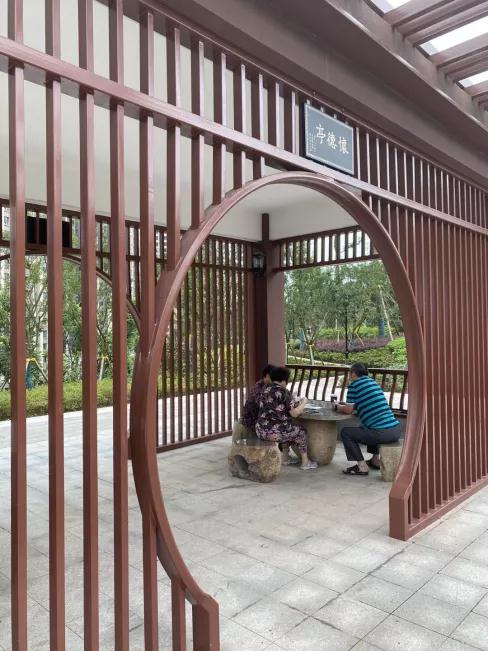 吃過早飯,記者來到位于兩江新區(qū)的禮仁公園。公園里栽種著錯落有致的樹木和草坪,形成了漂亮的立體景觀,休閑亭臺、健身設施、多功能步道坐落其間,已經(jīng)聚集了不少三五成群的居民在散步休閑。
