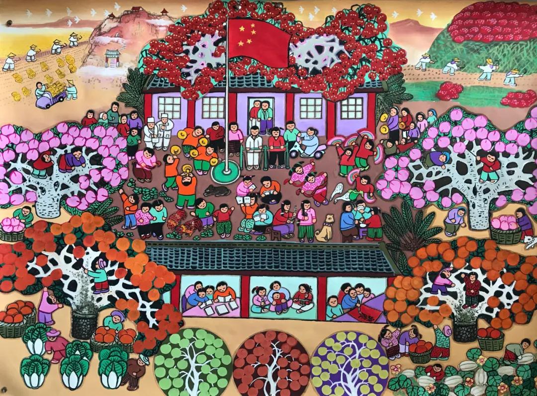 習近平總書記指出:“中國實現(xiàn)了快速發(fā)展和大規(guī)模減貧同步,貧困人口共享改革發(fā)展成果,這是一個了不起的人間奇跡。”當代中國正在書寫“人類歷史上最成功的脫貧故事”,全面小康的光明前景就在前方,“到處都是活躍的創(chuàng)造,到處都是日新月異的進步”,中國大踏步前行的信心從來沒有如此充足飽滿,中國人民的精神從來沒有如此昂揚煥發(fā),這些都為農民畫創(chuàng)作者放歌新時代、描繪新時代提供了充沛自信和豐富靈感。而農民畫活力迸發(fā)、各地農民畫鄉(xiāng)不斷涌現(xiàn),正是中國經(jīng)濟繁榮發(fā)展、社會安定有序、人民安居樂業(yè)的生動注腳。
