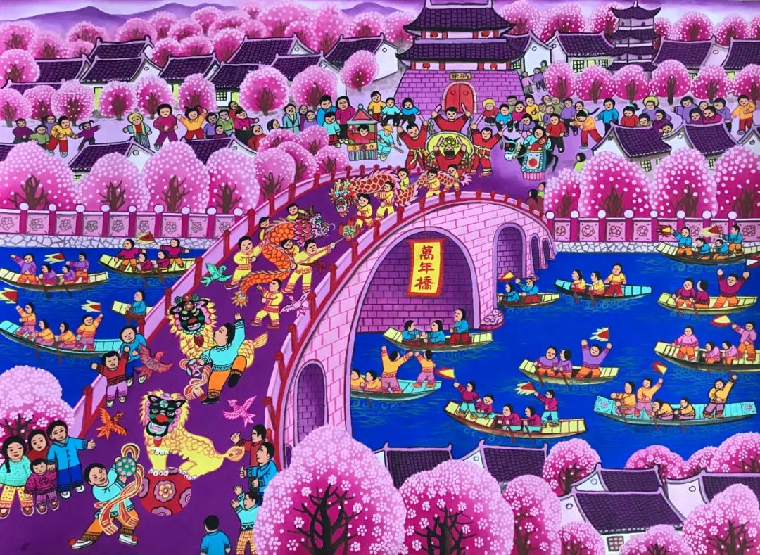 “農民畫的靈感來自農村生活,傳統(tǒng)農民畫多以豐收為主題,飽含著農民對吃飽飯的渴望;近年來,畫作題材不斷豐富、內容更加多元,不僅表現(xiàn)了對未來生活的向往,更是對當下幸福生活的深情寫照,”青州農民畫院院長宋曉表示,農民畫的發(fā)展史,正是中國農村發(fā)展變化的生動縮影。