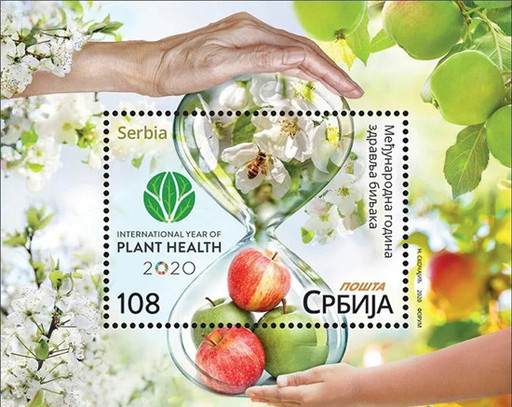 塞爾維亞郵政國際植物健康年小型張。