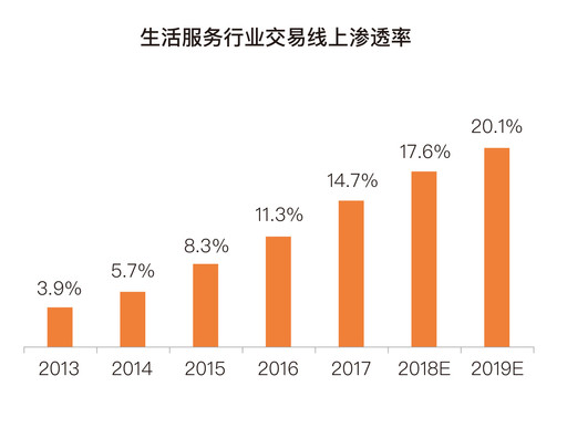 如今,近六成的中國零售交易受到數字化影響,生活服務市場也同樣收獲改變帶來的紅利,行業的線上滲透率逐年遞增。(見表1)