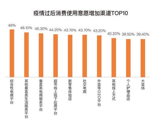 而疫情過后,消費者對于外賣等生活服務平臺的使用意愿也顯著提升。(見表2)