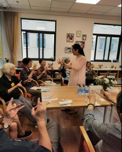 “蘭花指,蘭花掌,蘭花拳。好,加大難度,一個手蘭花指,一個手蘭花掌……”在知樂認(rèn)知癥家庭支持中心,昆曲閨門旦演員趙津羽正在向認(rèn)知障礙癥老人指導(dǎo)簡單的手指動作。