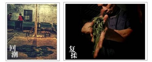 ?去掉青草氣及部分水氣。把握好鍋溫及力度,加壓先重后輕,需時(shí)7~10分鐘,使茶坯緊細(xì)成條。