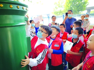 了解了郵票的功能和歷史,小記者們還接到了設計一枚郵票、寄出一封信件的任務。有了前面的知識打底,大家很快就設計出了要素齊全的郵票。設計好的作品寄給誰呢?小記者們有的選擇寄給自己,有的選擇相互投遞。在郵政大樓外投下信件后,青奧村小學林安琦說:“這可是我寫的第一封信呢。今天不僅了解了郵票的故事,還學習了怎么寫信,收獲真不小。”