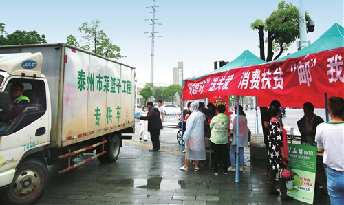 泰州郵政與泰州農(nóng)業(yè)農(nóng)村局聯(lián)合舉辦“新型農(nóng)業(yè)經(jīng)營主體農(nóng)副產(chǎn)品社區(qū)行”公益助農(nóng)活動。□周群峰 攝