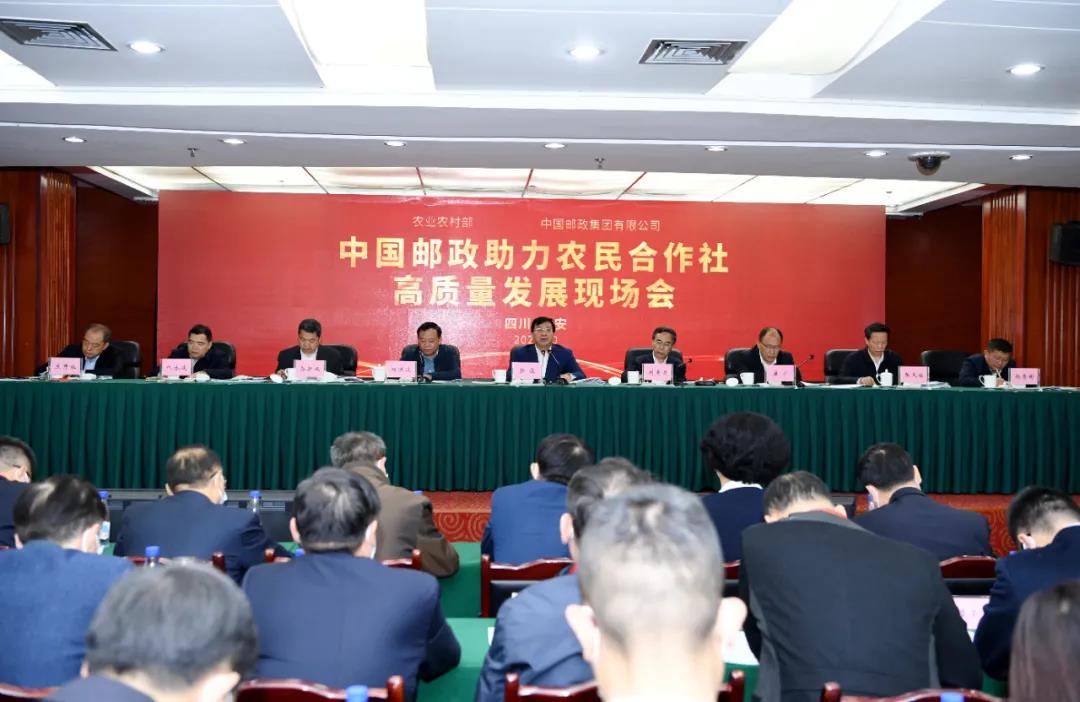 10月18日至19日,農(nóng)業(yè)農(nóng)村部和中國郵政集團(tuán)有限公司在四川雅安聯(lián)合舉辦“中國郵政助力農(nóng)民合作社高質(zhì)量發(fā)展交流活動”。該活動旨在進(jìn)一步總結(jié)政企聯(lián)合支持農(nóng)民合作社高質(zhì)量發(fā)展的主要做法,交流彼此優(yōu)秀經(jīng)驗(yàn),明確下階段重點(diǎn)工作。四川省人民政府副省長、省委農(nóng)村工作領(lǐng)導(dǎo)小組副組長楊洪波在活動上致辭,中央農(nóng)村工作領(lǐng)導(dǎo)小組辦公室副主任、農(nóng)業(yè)農(nóng)村部黨組副書記、副部長韓俊,中國郵政集團(tuán)有限公司黨組書記、董事長劉愛力出席活動并講話。中國郵政集團(tuán)有限公司副總經(jīng)理康寧,中國郵政集團(tuán)有限公司副總經(jīng)理、中國郵政儲蓄銀行股份有限公司行長郭新雙出席活動。