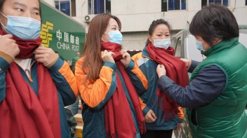投遞員們在一線“沖鋒陷陣”,后方的保障工作也及時跟進。為了幫大家出班時抵御風寒,今天一大早,朝陽郵政工會就把2500條圍巾送到了投遞員的手中?!斑@圍巾厚實,天再冷也覺得特別溫暖,所有的辛苦都是值得的,我們會送好每一件包裹、每一份報刊,讓廣大市民和用戶都滿意?!薄把蚪q圍巾既柔軟又保暖,冬天出班再也不用擔心會冷了?!贝蠹艺f笑著一個個戴好了圍巾。據了解,朝陽郵政工會已制定了一系列的送溫暖計劃,讓投遞員們在緊張的工作之余有熱水喝、有熱飯吃、有地方休息,全力解決他們的后顧之憂。