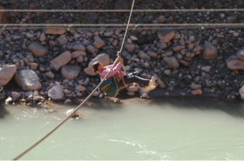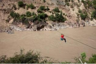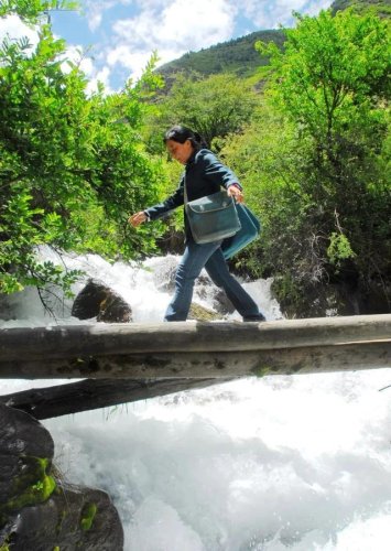 尼瑪拉木至今仍記得第一次過(guò)溜索的場(chǎng)景:她站在江邊,面對(duì)呼嘯的狂風(fēng)和咆哮的江水,回憶起沉寂在江中的弟弟,心里一陣陣發(fā)怵,鼓不起勇氣。 “我鼓勵(lì)自己,拉木你能行”, 可當(dāng)鉤子掛上溜索的一瞬間,尼瑪拉木渾身一點(diǎn)力氣都沒(méi)有了。桑稱所長(zhǎng)用力推了她一把,就這樣,尼瑪拉木被吊在半空中,耳邊只剩下急促的風(fēng)聲和腳下的滔滔江水聲。