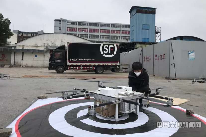 疫情防控期間使用無人機為武漢金銀潭醫院運送緊急防疫物資。