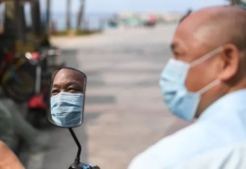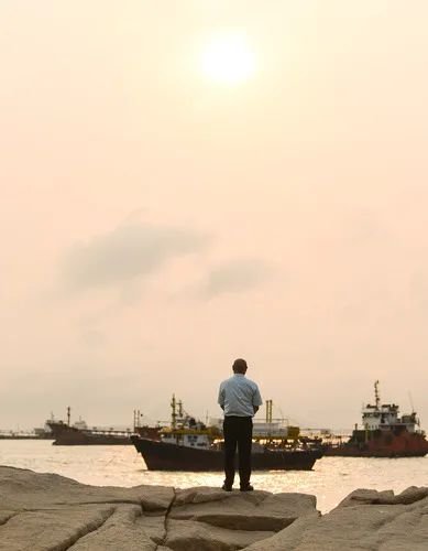 下班后,謝堅在廣東珠海市外伶仃島海邊望著遠方(4月21日攝)。