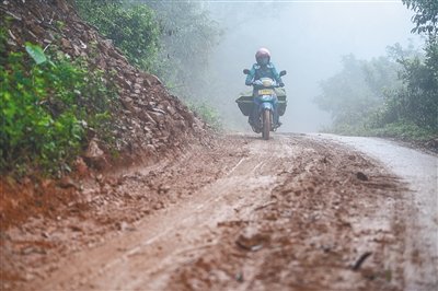 上坡、下坡、再上坡……由于當天大霧加上小雨,盡管符蓮香對這條路熟悉得不能再熟悉,但為了將郵包完好無損地送到村民手中,她騎得比平時更加小心。