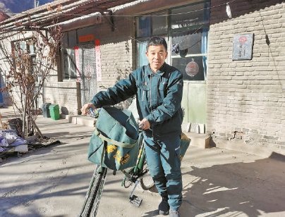 分揀之后,王懷敬出發了。每天,他要完成周邊4個大村15個投遞點、200多戶村民的郵件收發工作。“村里的路不好走,到處都是高坡,電動車怕走著走著就沒電了,還是自行車靠譜,騎不動了,就推著走?!?7年來,王懷敬送件,靠的是一輛自行車和兩個挎包。