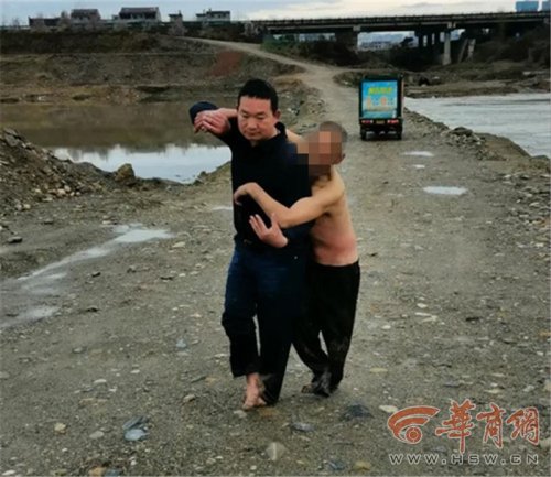 熟悉水性的他立即丟下車子脫下外套奔向河邊,一頭扎進水里,迅速抱起老人。