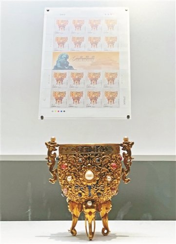 展覽現場,共展出郵票56套1732枚(含故宮主題郵票52套1590枚),郵票手稿等珍貴展品54件,聯合發行首日封13件;配合郵票展出的25件故宮文物,涵蓋書畫、玉器、琺瑯器、青銅器、瓷器、家具等多個門類,與同主題的郵票對比展出,交相輝映。