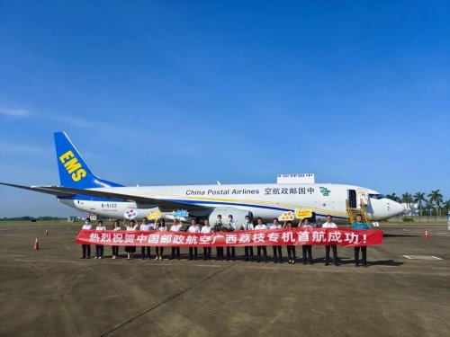 據悉,中國郵政“南寧—南京”荔枝專線由波音737-800全貨機專機執行,每周運行七天,每天一班。運行期從即日起至6月24日,覆蓋廣西荔枝集中上市期。