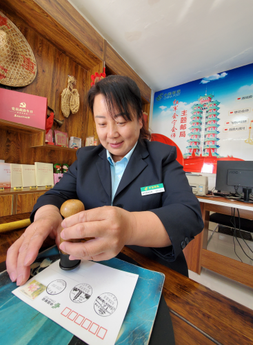 近年來,甘肅白銀市和會(huì)寧縣努力打造紅色文化,當(dāng)?shù)剜]政成立了會(huì)寧會(huì)師主題郵局,開發(fā)了會(huì)師主題郵品,通過郵品宣傳、傳承會(huì)師精神。一位騎行到會(huì)寧的騎友特意來到主題郵局,在會(huì)寧會(huì)師明信片上蓋上郵戳,并將明信片投入郵筒?!霸诿餍牌仙w上郵戳,才算是真正到會(huì)寧打卡過,看見明信片就會(huì)想起紅軍會(huì)寧會(huì)師這段歷史。”