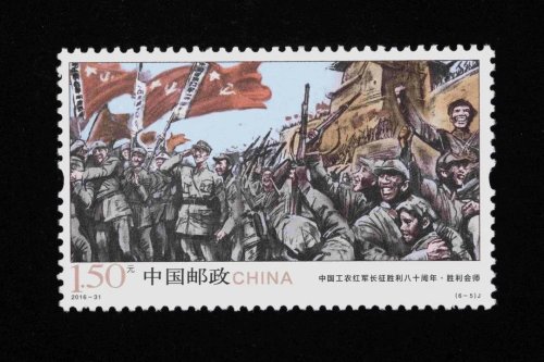2016年10月22日,《中國(guó)工農(nóng)紅軍長(zhǎng)征勝利八十周年》紀(jì)念郵票發(fā)行,6枚郵票圖案分別為:長(zhǎng)征出發(fā)、遵義會(huì)議、四渡赤水、過雪山草地、勝利會(huì)師、緬懷先烈不忘初心走好新的長(zhǎng)征路。