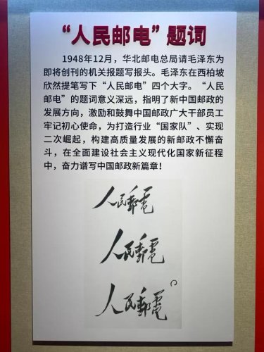 特別是在新民主主義革命時期,毛澤東題詞“人民郵電”,周恩來題詞“傳郵萬里 國脈所系”等珍貴文物,充分反映了郵政在社會發展中的重要地位和作用,指出了郵政事業為人民服務的性質宗旨,明確了郵政人的初心使命。