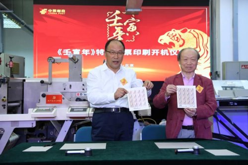9月16日,中國郵政集團有限公司舉辦《壬寅年》特種郵票印刷開機儀式。集團公司黨組書記、董事長劉愛力,副總經理康寧,《壬寅年》生肖郵票設計者、著名畫家馮大中,清華大學美術學院院長、中國美術家協會副主席魯曉波等出席儀式。劉愛力、馮大中共同啟動《壬寅年》特種郵票印制,宣告生肖虎年郵票正式投入生產。康寧、馮大中共同簽批《壬寅年》郵票印樣。康寧、魯曉波、馮大中分別致辭。活動通過中國郵政官方微信、新華云、抖音平臺進行了實時轉播。