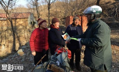 董乃軍(右)在大馬峪村投遞,他的摩托車(chē)一停,會(huì)吸引來(lái)許多村民。盡管作為一名農(nóng)村郵遞員待遇不高,但他已經(jīng)成為這條郵路上不變的風(fēng)景,山里的村民更是離不開(kāi)他,他說(shuō):“我很熱愛(ài)自己的這份投遞工作,我舍不得山里的人們,我會(huì)一直沿著這條郵路走下去。”