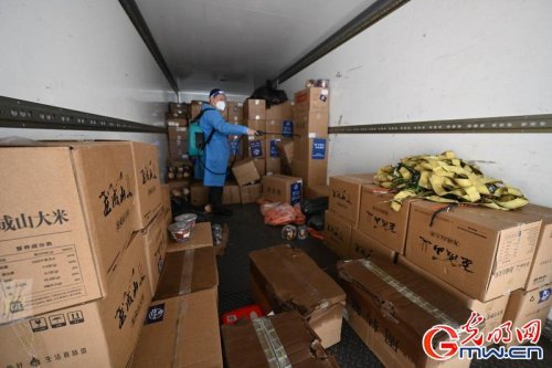 據悉,目前,奉賢郵政部門參與全區保供物資最后 10 公里和最后 1 公里的配送,原本投入快件投遞的車輛和人員全部用于保供物資的轉運中,確保當日物資當日送達。(沈春琛攝 / 光明圖片 / 視覺中國)