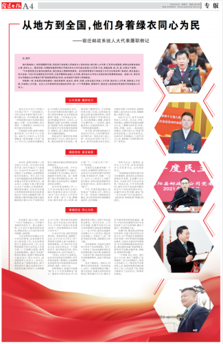他們是郵政人,傳民情履職盡責,用實際行動詮釋人民郵政為人民的宗旨;他們是人大代表,匯民聲共商國是,把群眾的需求裝在心里、放在心上。截至目前,中國郵政集團有限公司宿遷市分公司已走出各級人大代表10名,涵蓋全國、省、市、縣、鄉鎮五個層面。
