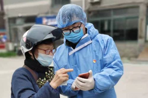 4月1日,集郵與傳媒黨支部的第一批志愿者劉衛東和顏小娟準時來到學田社區報到,恰好當天趕上崇川區全員第二輪核酸檢測,在與社區工作人員簡單溝通情況后,兩人便迅速上崗,負責核酸采樣現場的秩序維護、體溫測量、采樣碼注冊等工作。