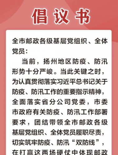 面對復(fù)雜的疫情防控形勢,揚州郵政人堅信有省分公司黨委和地方黨委政府的堅強領(lǐng)導(dǎo),就一定能夠打贏疫情防控和經(jīng)營發(fā)展“雙勝利”。