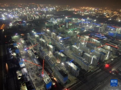 這是雄安新區容東片區華望城項目夜景(1月4日攝,無人機照片)。 新華社記者 駱學峰 攝