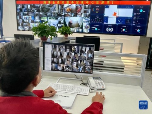 湖南省湘潭縣養老服務信息中心工作人員在工作中(2021年12月2日攝)。緊急情況下,養老服務信息中心能為佩戴智能手環的老人提供及時服務。新華社記者 蘇曉洲 攝