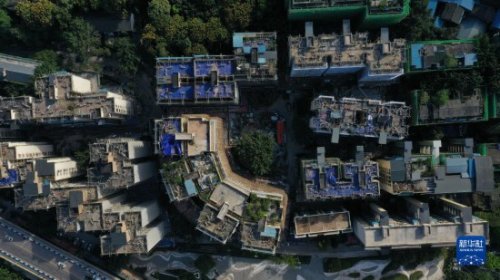 這是重慶市北碚區新房子片區老舊小區改造項目施工現場(2021年10月23日攝,無人機照片)。新華社發(秦廷富攝)