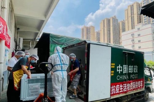 在疫情防控期間,成都市郵政分公司承擔(dān)起了成都市成華區(qū)部分重點(diǎn)區(qū)域保供生活物資運(yùn)輸任務(wù),全力保障封控區(qū)居民的生活。