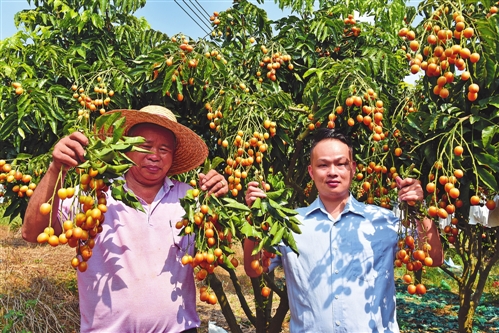在種植基地建設初期,土地流轉、集約耕種都需要大量資金。就在謝先生因資金短缺一籌莫展之際,郁南縣支行主動上門調研客戶金融需求,深入種植基地了解情況。祝曉剛在得知謝先生的種植規劃和資金需求后,立即為他制定信貸融資方案,通過引入廣東省農業融資擔保機制,為其申請了“農擔貸”產品,切實解決了謝先生缺少貸款抵押物的問題。目前,謝先生的種植基地從最初的100畝擴大到250畝,種植無核黃皮樹近3萬株。“郵儲銀行給予我貸款資金支持,讓我在黃皮種植事業上更有信心了。目前,除了黃皮,我還種植‘金煌芒’等特色水果,致富的道路越走越寬。”謝先生對下一步的發展信心十足。