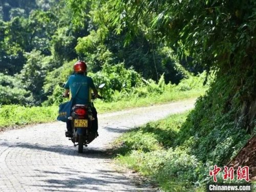 匡大由每日騎著摩托車前往中山鄉的5個村,往返100多公里投送包裹。“現在信件少了,報刊書籍在手機上就能看,我們送的主要是村民網購的東西,我這輛摩托車,快載不下了?!闭f著,匡大由往車上裝上包裹。
