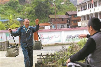 河口鄉位于大山腹地,村與村看似近在眼前,實則山水環繞,道路蜿蜒曲折。“上山鉆云天,下山到河邊,兩山能對話,走路要半天”是這里的真實寫照。早些年,當地沒有固定的郵政營業點。分揀完郵件后,張林昌要用扁擔挑起三四十斤重的郵包,沿著山路逐戶投遞,一個來回就是90余公里。餓了找點野果,渴了捧口山泉,有時候還要涉溪渡河。第一次送郵件,張林昌整整走了3天。回來時,只見他頭發蓬亂,褲腳沾滿泥巴,衣服被刺穿了好幾個洞,手腳上還有一道道血印子。但他絲毫不覺得苦:“當過兵的人有一副‘鐵腳板’,走這樣的山路不算事。”
