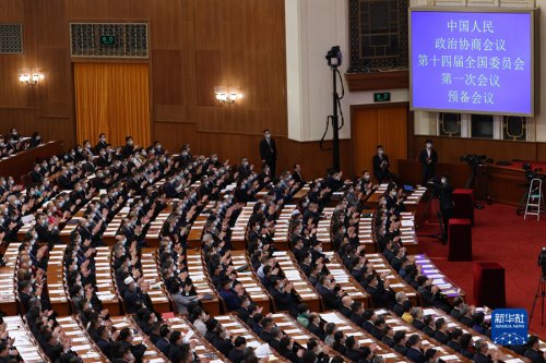 新華社北京3月3日電 中國人民政治協商會議第十四屆全國委員會第一次會議預備會議3日下午在人民大會堂舉行。