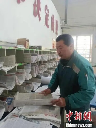 圖為中國郵政集團公司酒泉市分公司肅州區公司員工馬毅在整理報紙。(資料圖,中國郵政集團公司酒泉市分公司肅州區公司供圖)