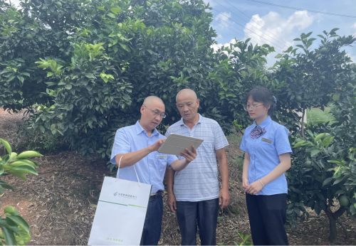 傅干生是信豐縣嘉定鎮的臍橙種植專業大戶,從2013年開始種植臍橙,到2020年臍橙種植面積已達400余畝。勤勞踏實、滿懷憧憬的他怎么也沒有想到要經歷如此坎坷,由于“柑橘絕癥”黃龍病的肆虐而來,臍橙種植基地將近300余畝果樹需要砍伐重新種植,損失慘重。由于前期已投入大量資金,購買新苗資金沒有著落,他急得東奔西跑去銀行申請貸款,可當時的困境對于任何一家銀行來說要發放貸款都非易事,貸款申請的不順利對他而言更是雪上加霜。一時間,他仿佛被壓了一塊巨石般無精打采。