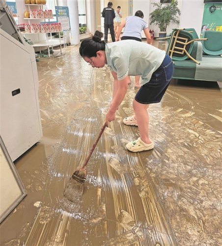 8月4日,涿州郵政范陽路營業(yè)所全體員工到崗,合力清理網點淤泥,當天上午網點恢復營業(yè)。□張宇梅 攝