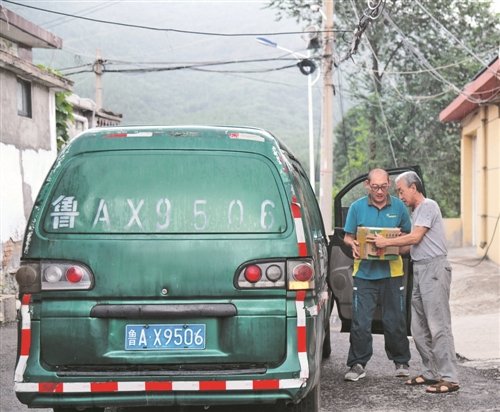 帶著這些郵件,許桂明駕駛郵車冒著大雨在蜿蜒的山路上行進。“上午還是烈日當(dāng)頭,汗流浹背,下午就是瓢潑大雨,全身淋透,這在山區(qū)很正常。”許桂明說。停好車,撐起傘,許桂明把郵件緊緊抱在懷里,沿著小路跑進村里。10年來,他始終牢記“人民郵政為人民”的服務(wù)宗旨,走遍了這15個行政村的家家戶戶,與村民們相熟相知,遇到不方便外出購物的老人以及需要幫助的村民,他都主動幫助捎送生活物資。