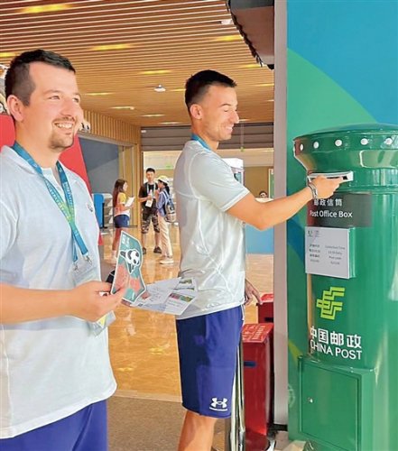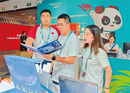 另一道亮麗的綠色風景線在郵政網(wǎng)點、專區(qū)服務點。成都郵政作為大運會郵品類特許生產(chǎn)商、大運會全品類特許零售商,在大運村、主媒體中心等重點區(qū)域精心打造了極具特色的郵政服務點位,選派郵務、金融、寄遞等專業(yè)精英組成志愿者服務團隊,提供全方位、高品質、面對面的寄遞、集郵、文創(chuàng)等郵政綜合服務,并在全市40個特許零售網(wǎng)點,開展紀念戳打卡、大運集郵展、迎大運沙龍、大運進校園等活動,激發(fā)市民參與熱情,為大運會營造濃烈氛圍。