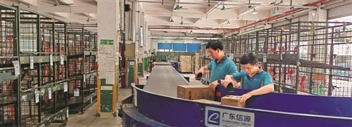 廣州市番禺區華南郵件直投中心分揀現場?!觖溫怪?攝
