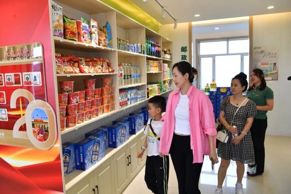 服務站的占地面積不大,卻功能俱全,站里設有特色農產品、包裹代收投、小園地組貨、文創、郵生活積分兌換、大單品和快消品、農資產品七大區域,此外還有直播間、金融工作室和黨建有聲讀書墻?!罢纠锆B加的業務越來越豐富,不僅成為游客的打卡地,更是村里人最關注的地方。”服務站負責人朱文彬指著特色農產品區的烤鴨蛋和石板大米告訴記者,這是村里最有名氣的兩款產品,在郵政電商直播中,也是賣得最好的。剛好當天有一場直播,她邀請記者一同參加。